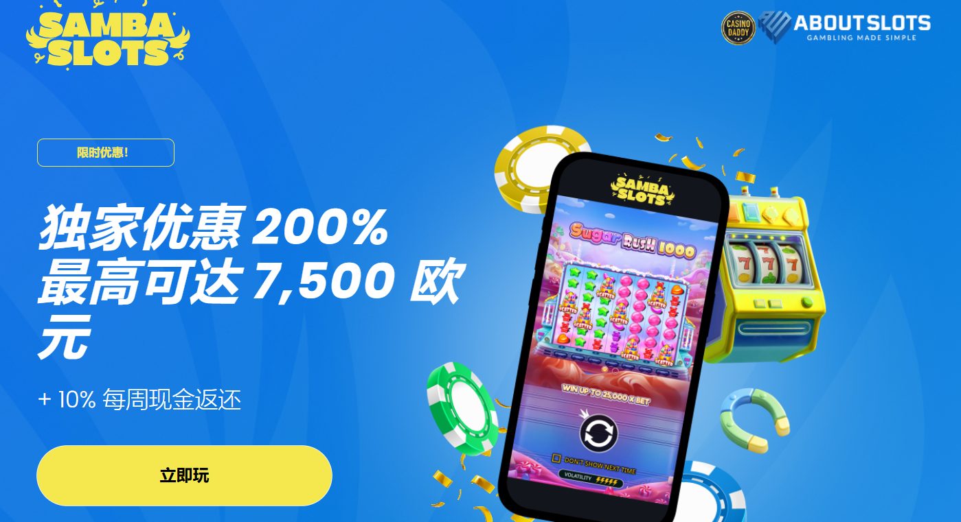 10. Samba Slots Casino:海量内容与嘉年华式感官盛宴